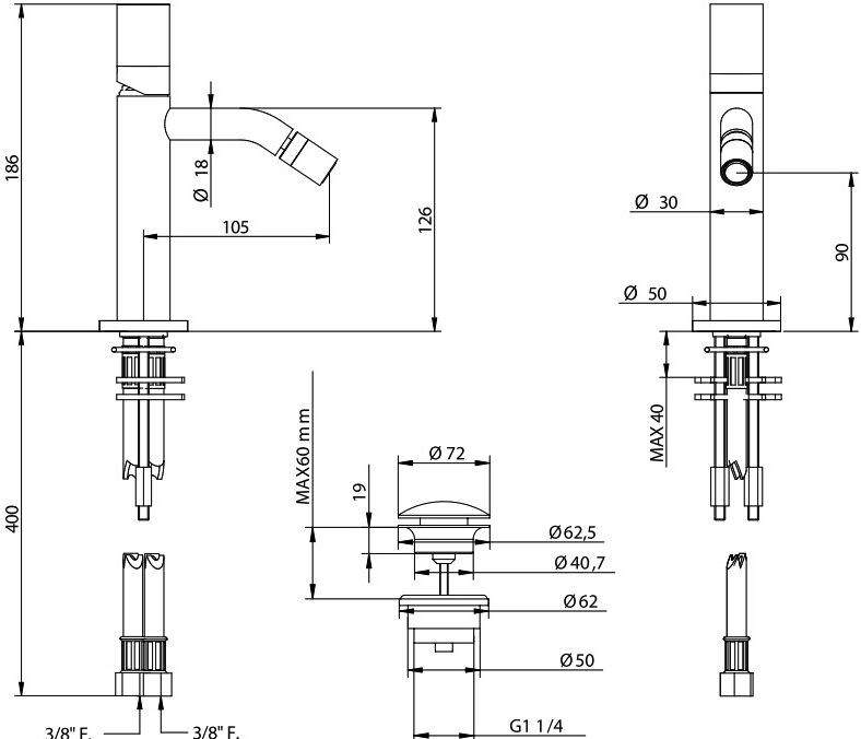 The total white and bright environment is reflected in a juxtaposition of mirrors where the essential lines, curved geometries and finishes in brushed gold of the kitchen and bathroom taps become the focus of the living space they decorate. Available in several versions, AQUA offers a minimal chic appeal that is highlysophisticated and stylish.