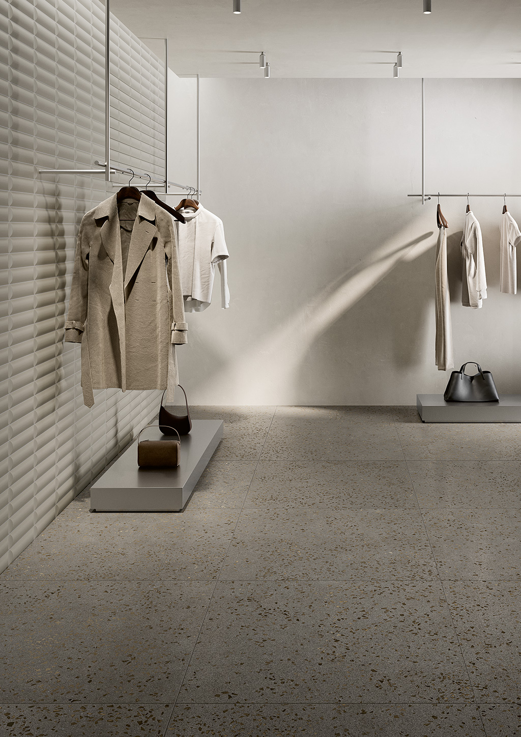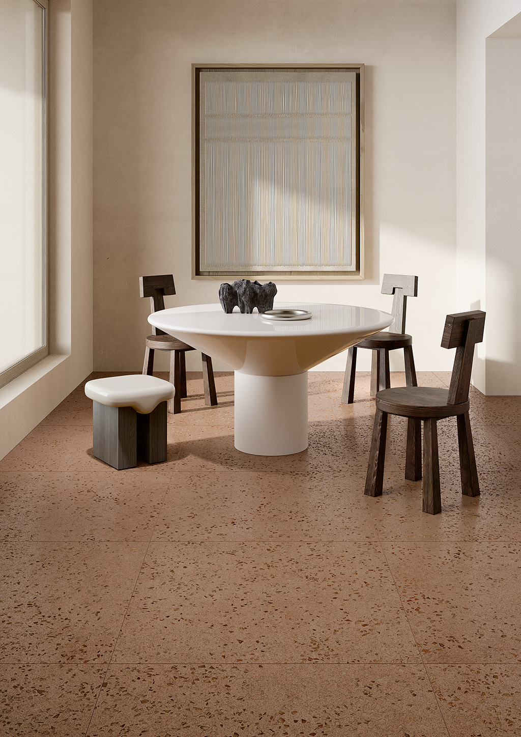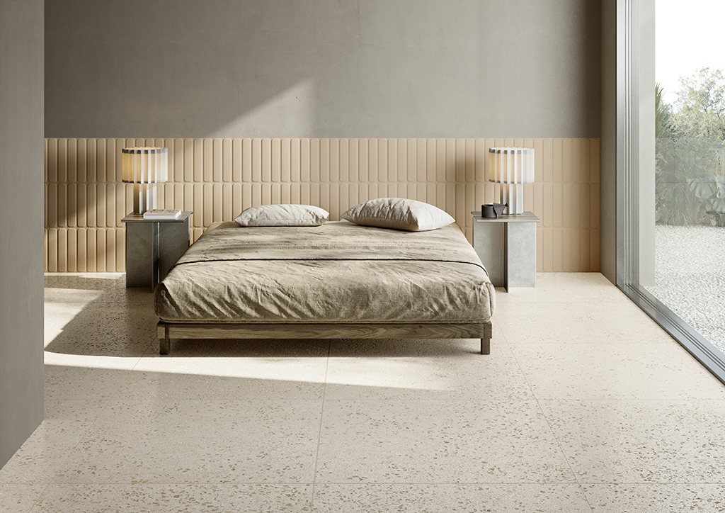 The collection puts a contemporary spin on the terrazzo tradition, with a crisp, rigorous, yet vibrant aesthetic. Small, irregular inserts sink into the surface like random signs that bring pace to the project. BITS celebrates the connection between detail and background, alternating apparent chaos with visual precision, for a material minimalism that brings character to contemporary living spaces, with porcelain stoneware floors and wall tiles ideal for modern, essential interiors.