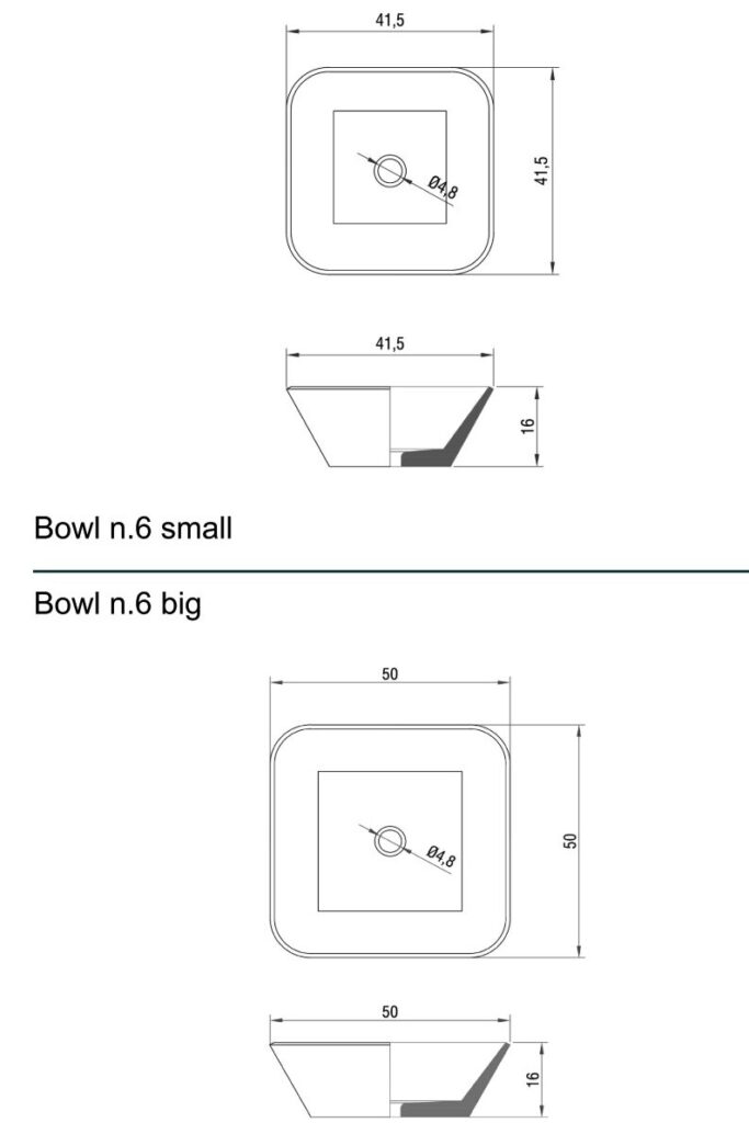 The elegance of its square shape with a pyramidal orientation, has a pleasant touch of originality in design. Bowl N°6 of the Nabhi countertop washbasin collection does not go unnoticed in every bathroom space.