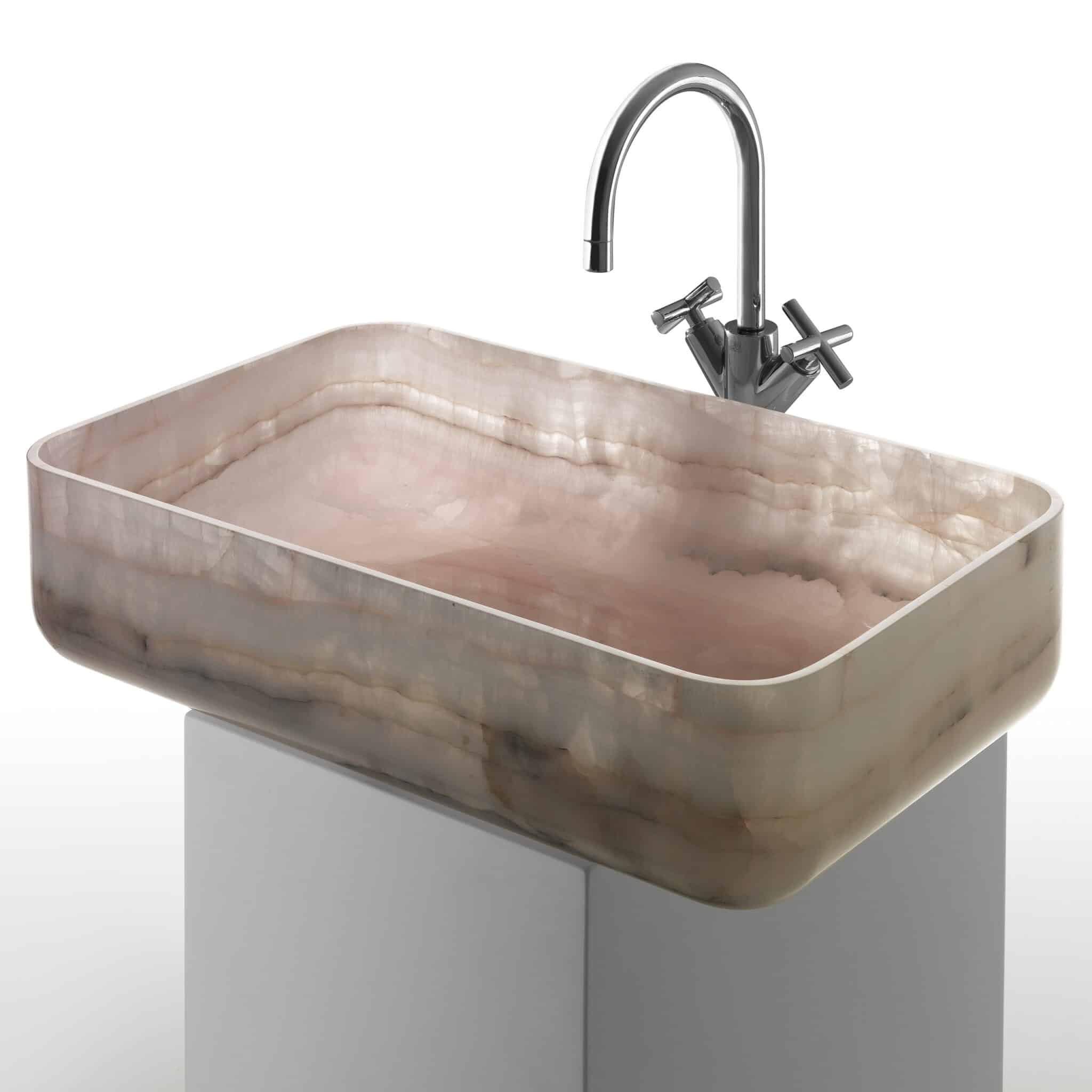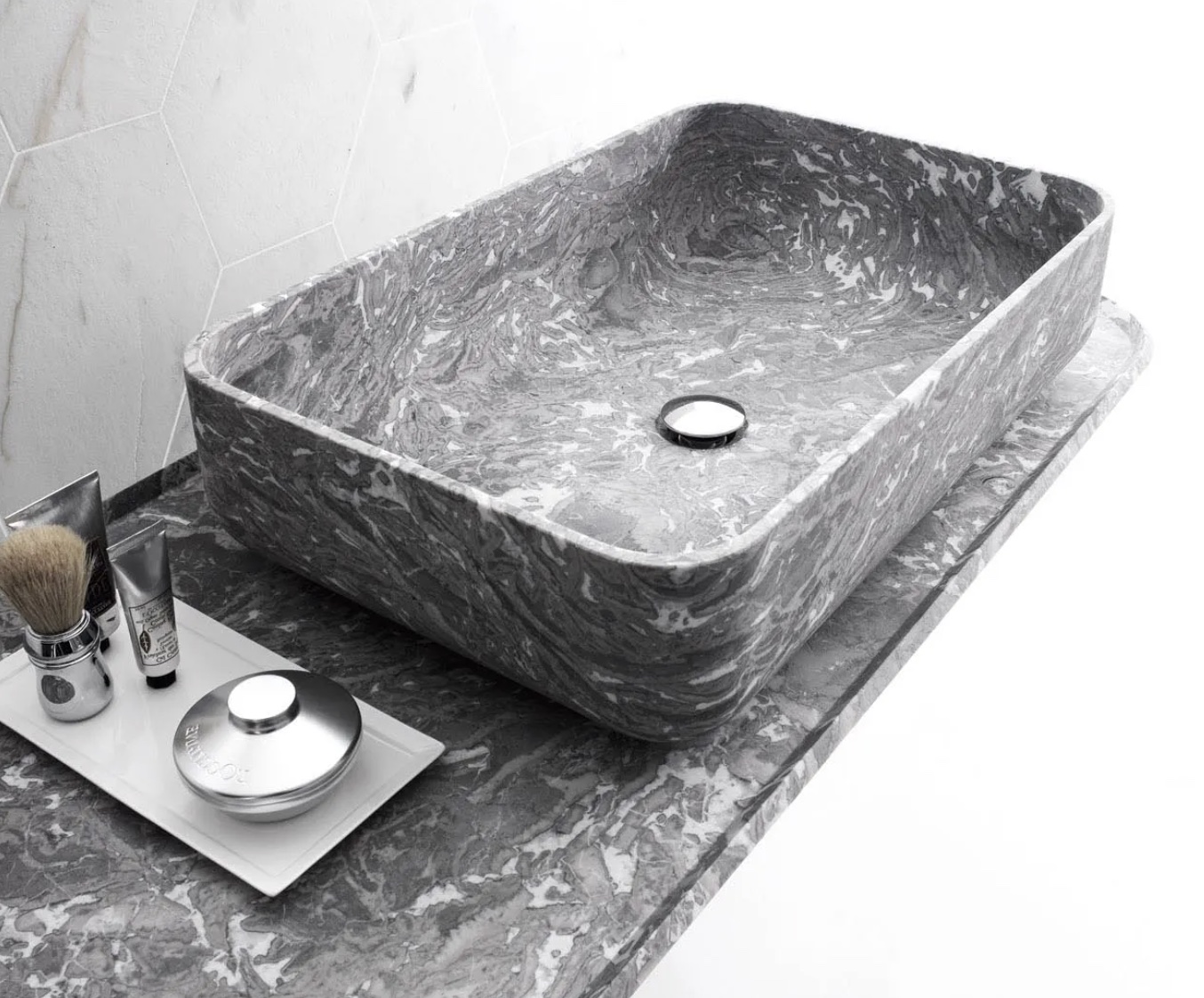 A classic rectangular shape, lightened by the careful processing on the edges and rounded corners, suitable for the most diverse styles of furniture. Bowl N°9 of the Nabhi countertop washbasin collection pleases everyone’s taste in any environment.