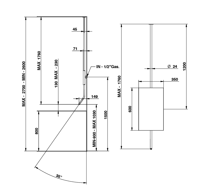 Requirements: Pair of hot and cold water deck taps - 38504, Pair of hot or cold water taps (wall) - 38500