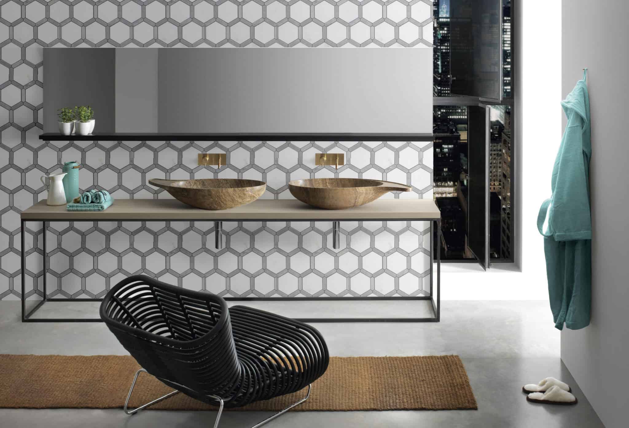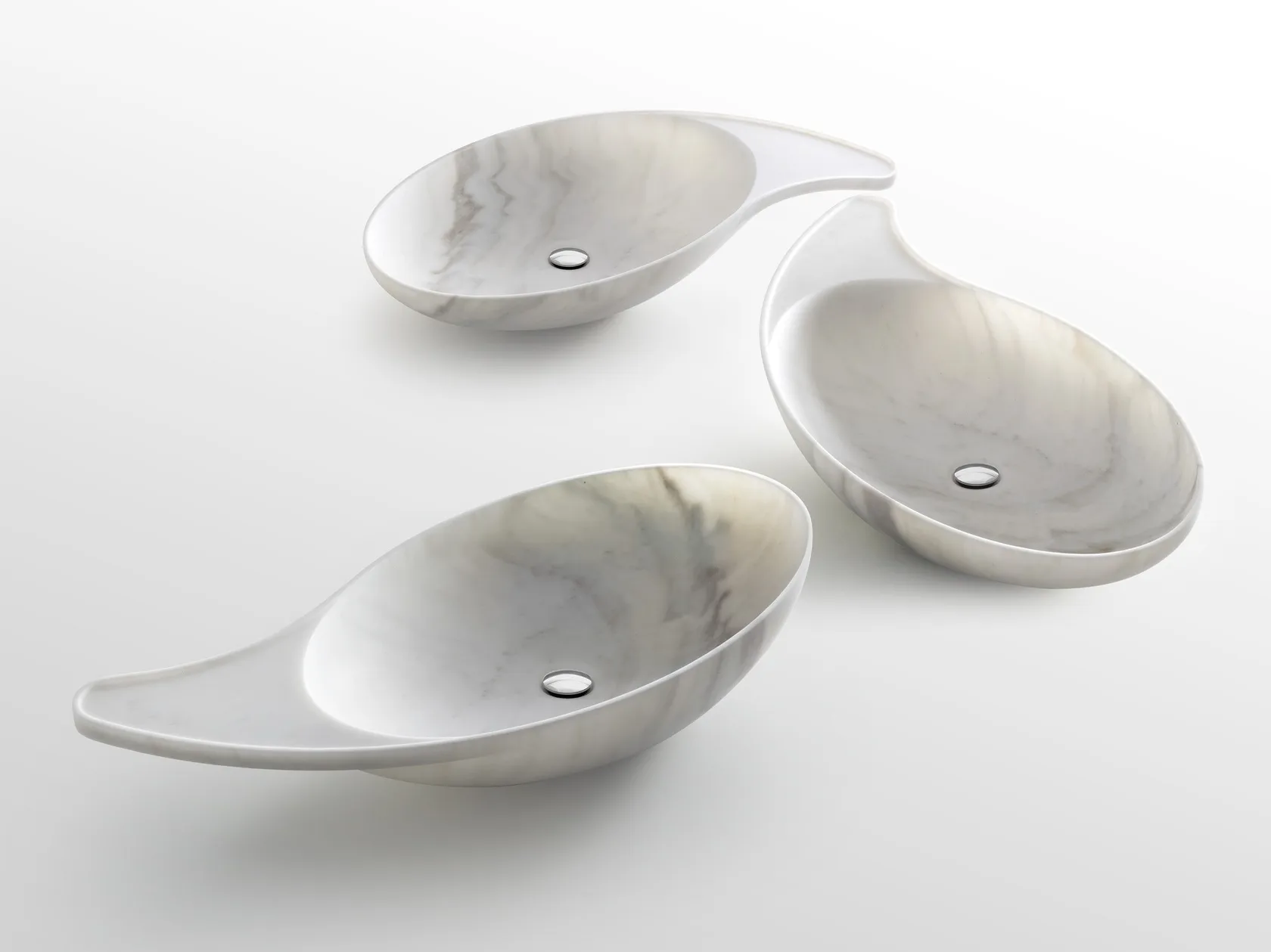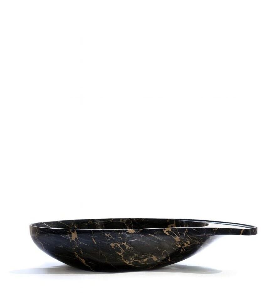 Cashmere is a refined washbasin where the oval shape of the basin has been extended to become a surface for functional and ornamental objects; it is like a creative twist that makes it unique. The sinuosity of the shape compares with a magnificent marble that gives Cashmere a rare expressive power. The marble substance has emphasized the basin aesthetic and the shape gives the lightness, and by the veins game. It is like a color bloom of harmonious shades.