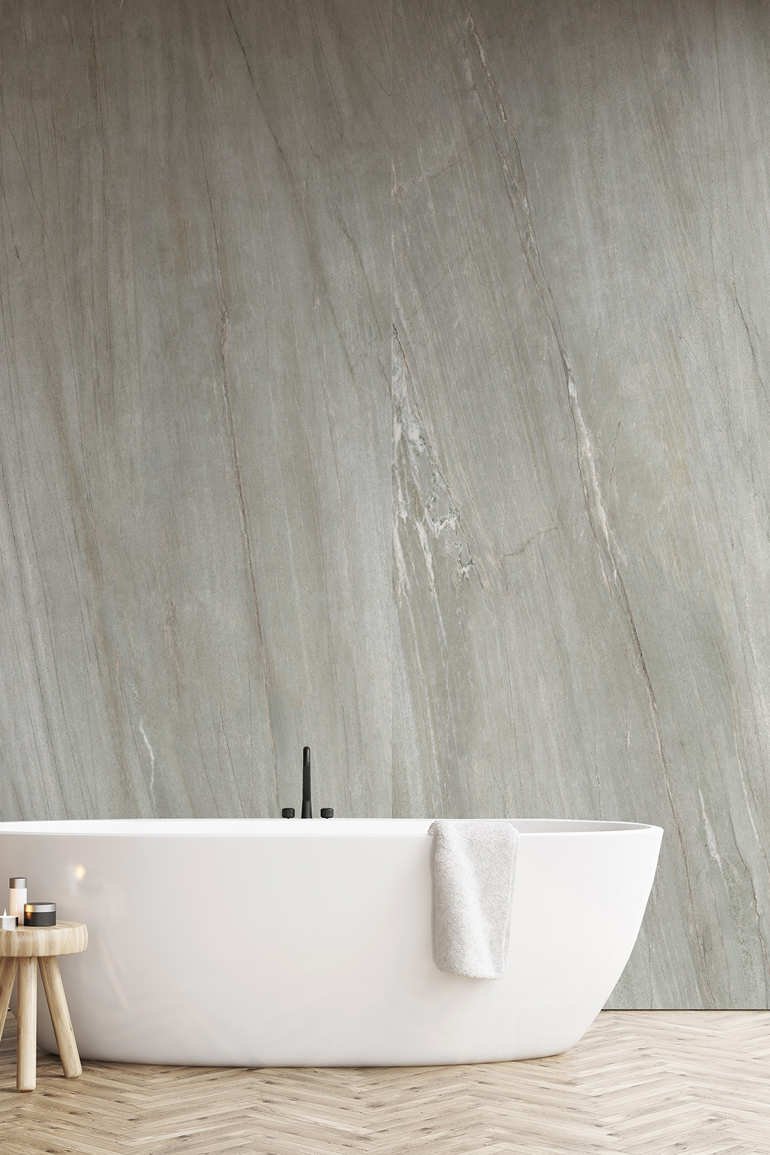 The stone-effect porcelain tiles in the Crystal collection by Coem are inspired by the beauty and elegance of Tiffany quartzite, a Brazilian stone with a veined texture and brilliant shades of blue and green, with gold and white veining effects. Tiffany quartzite is considered one of the purest and rarest materials, and is also appreciated for its lively shine. The Crystal porcelain tile collection adds an exclusive atmosphere to the flooring and walls of a variety of living spaces.