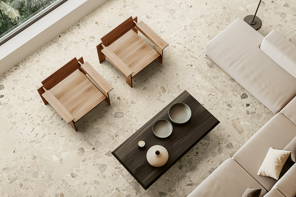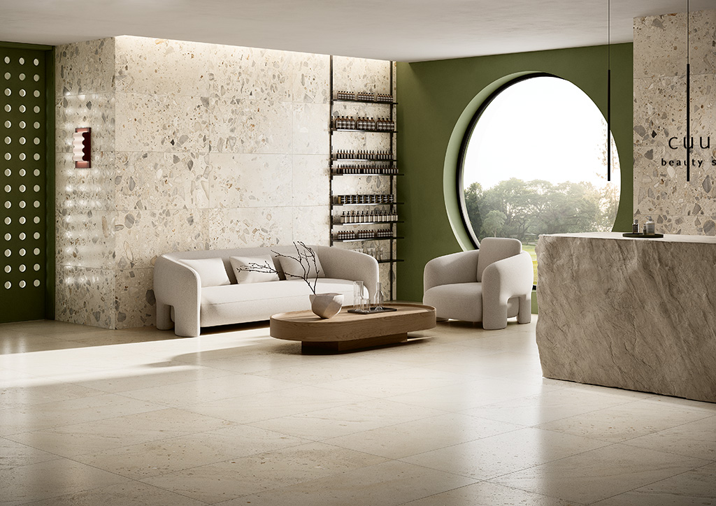 I CIOTTOLI is a porcelain stoneware collection inspired by a special limestone, marked by different sized grains in the matter that give the surface great depth and dynamism, with the slightest movements in the Sabbia variant and stronger features in the Sassi version. The charm of an ancient Italian stone returns in contemporary textures proposed in five colours, ideal for porcelain stoneware floors and wall tiles. This extremely versatile collection adapts perfectly to both indoor and outdoor floors, offering sophisticated, stylish solutions. Surfaces take on a profound, material appeal, thanks to an engineering process that highlights their varied, three-dimensional effects, while maintaining a pleasant appearance and a soft touch that makes I CIOTTOLI the ideal choice for both residential and retail settings.