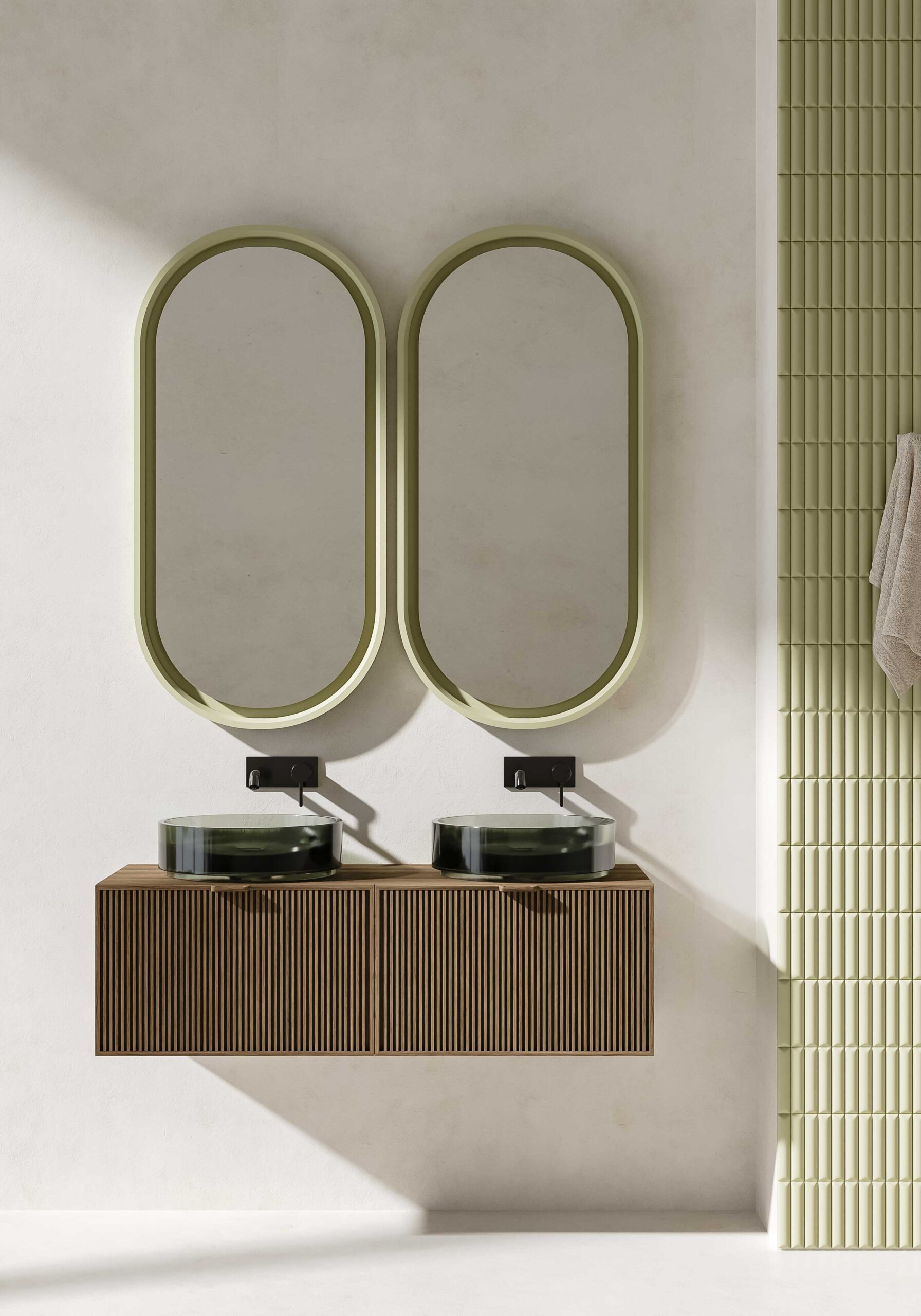 A refined interpretation of contemporary form, the IRIS round countertop washbasin by Norah Design is defined by its pure oval geometry and balanced proportions. Its softly sculpted profile and translucent finish create a subtle interplay of light, bringing depth and warmth to the bathroom space.