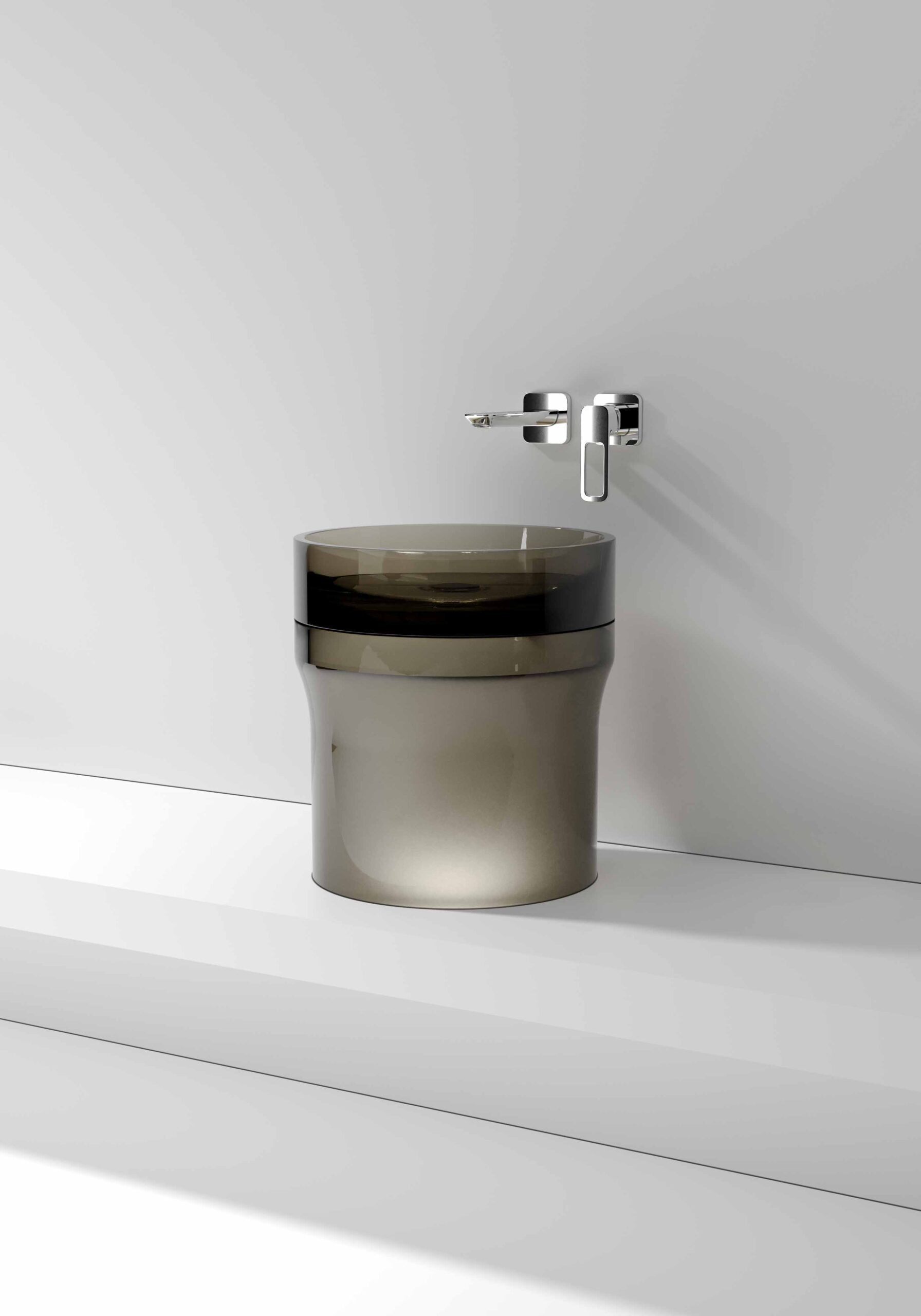 Crafted in NorahCrystal, the washbasin combines visual lightness with outstanding durability, offering a smooth, refined surface designed for everyday use. The material enhances the perception of volume while maintaining a minimal and sophisticated aesthetic.