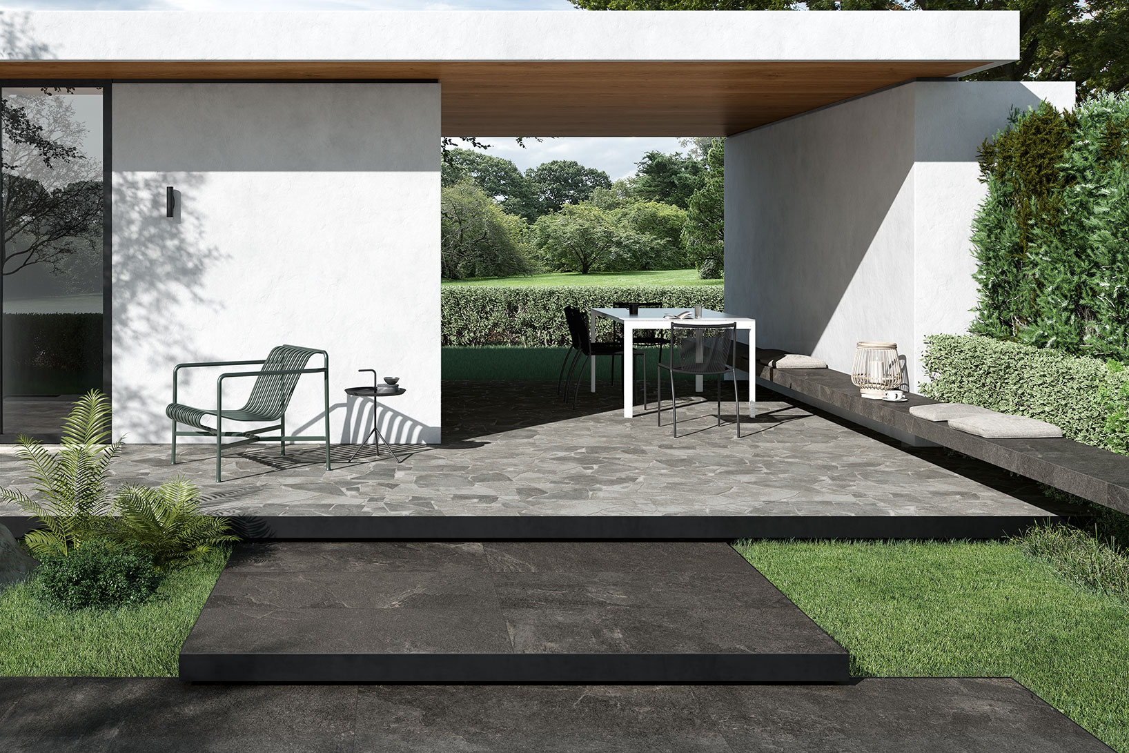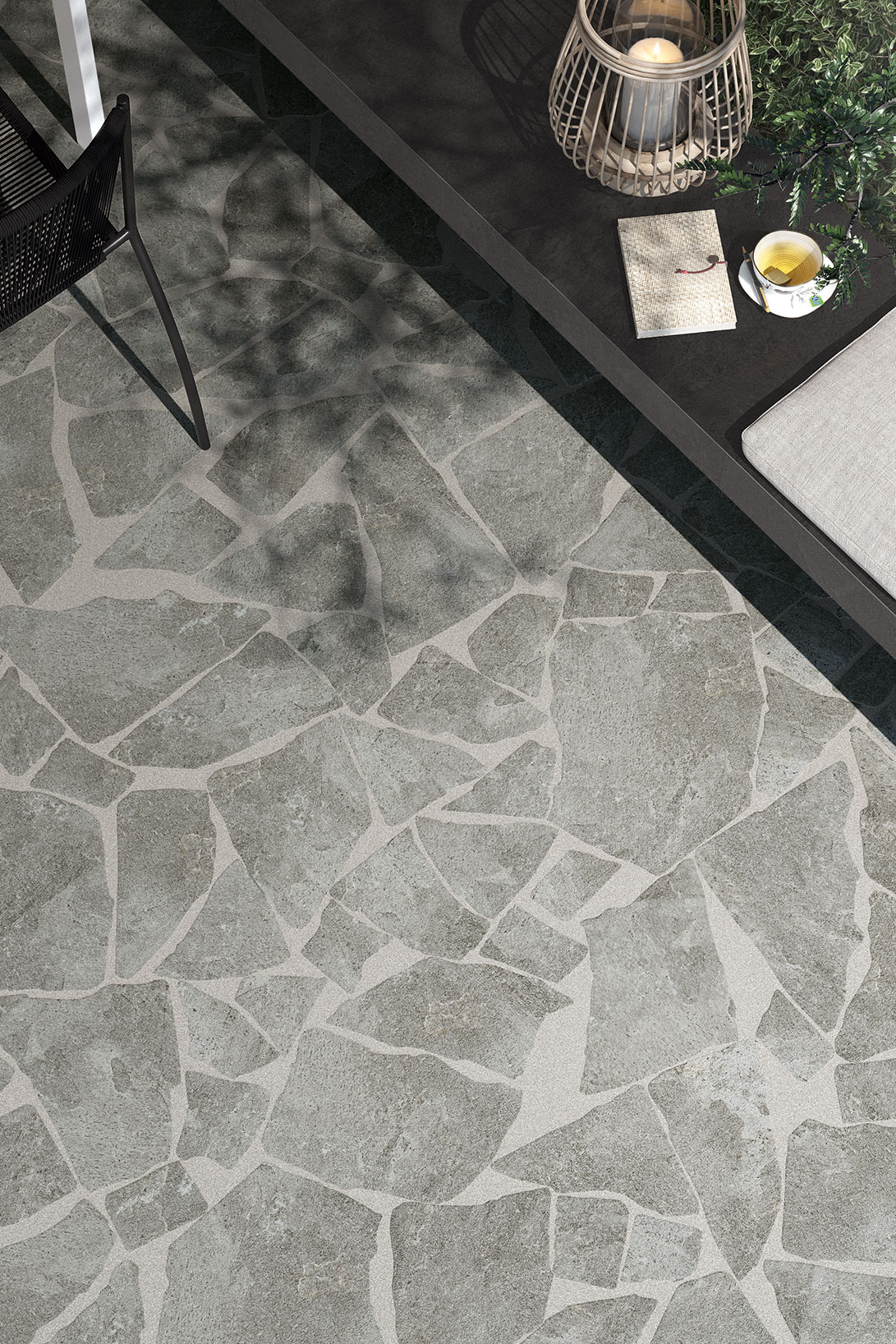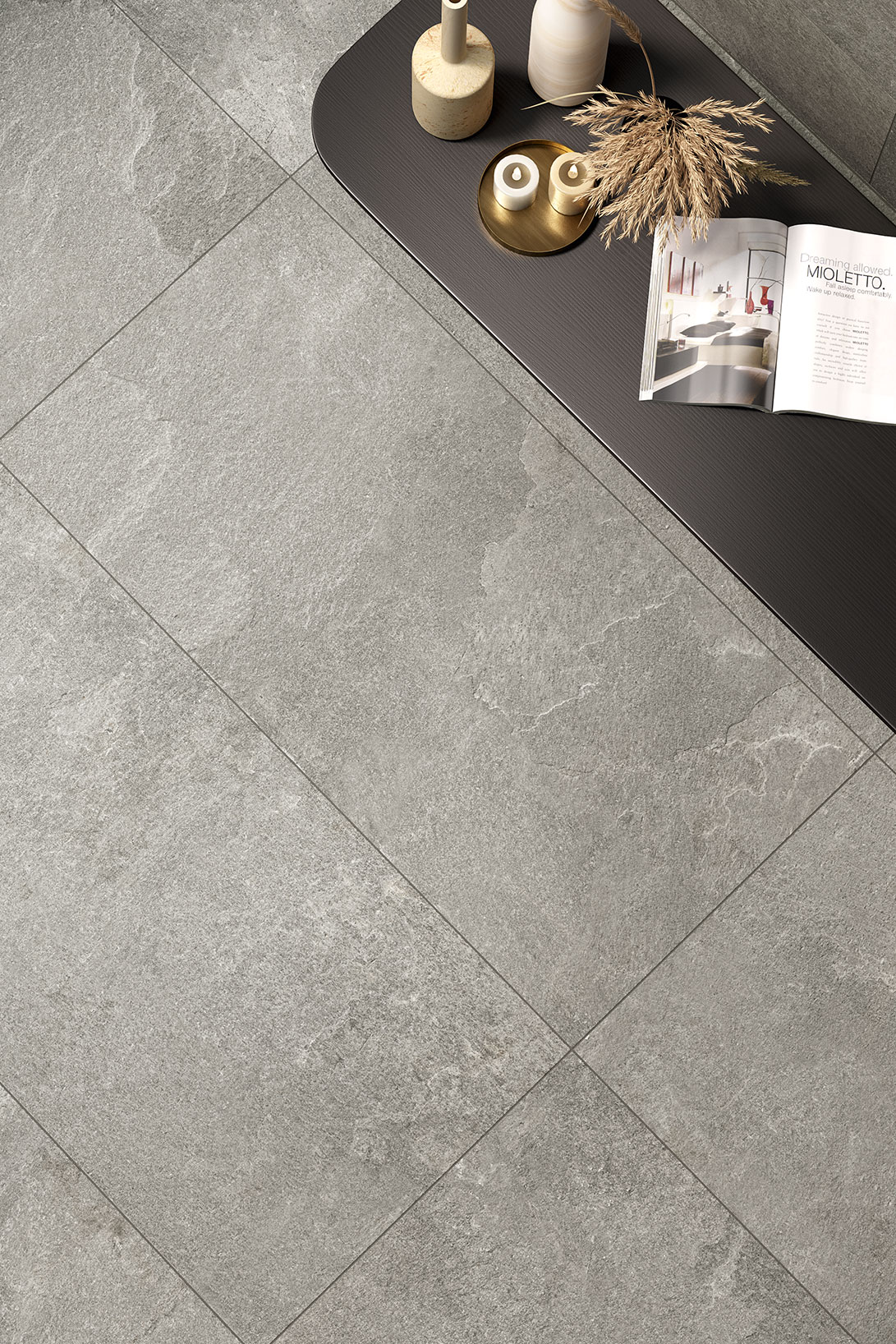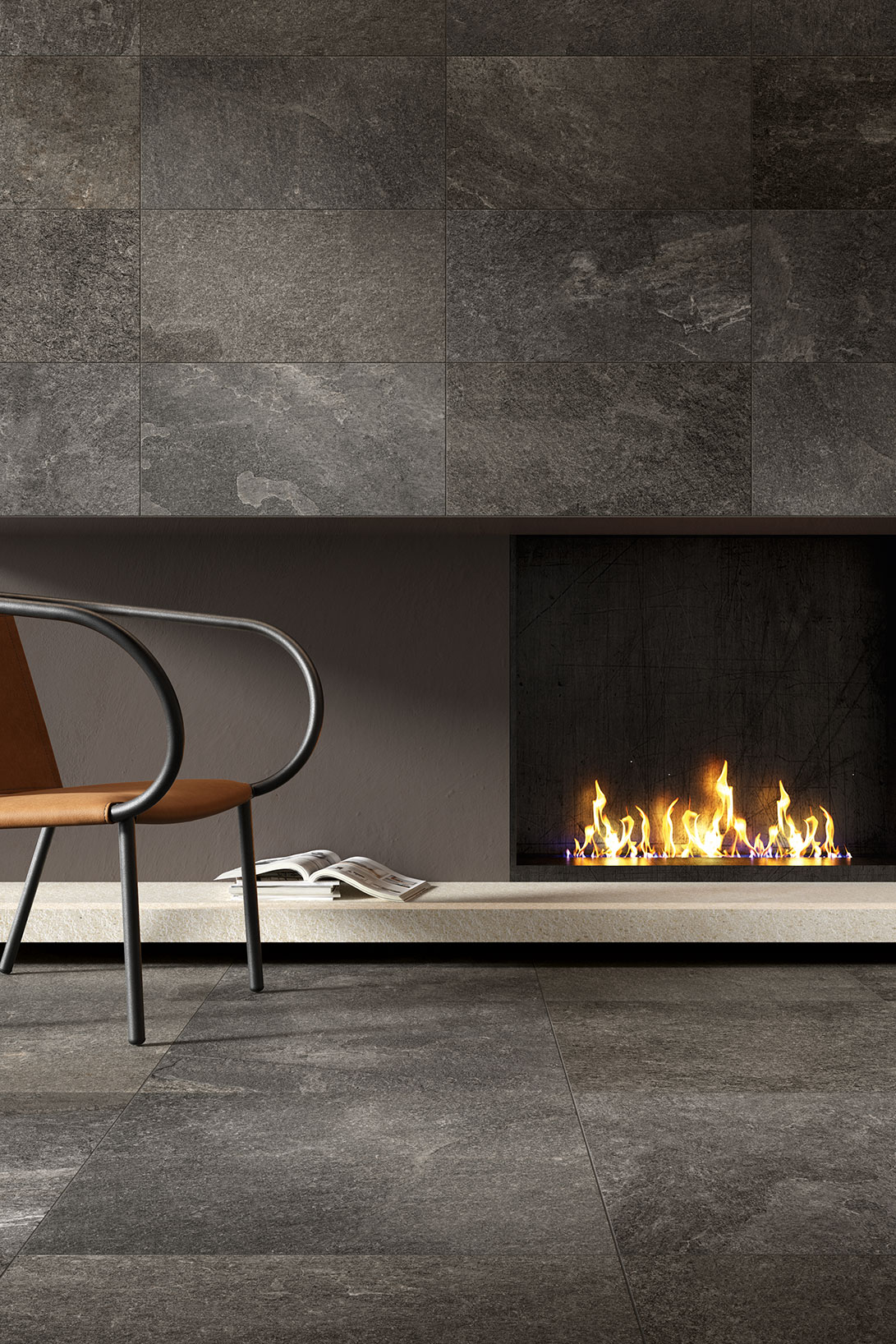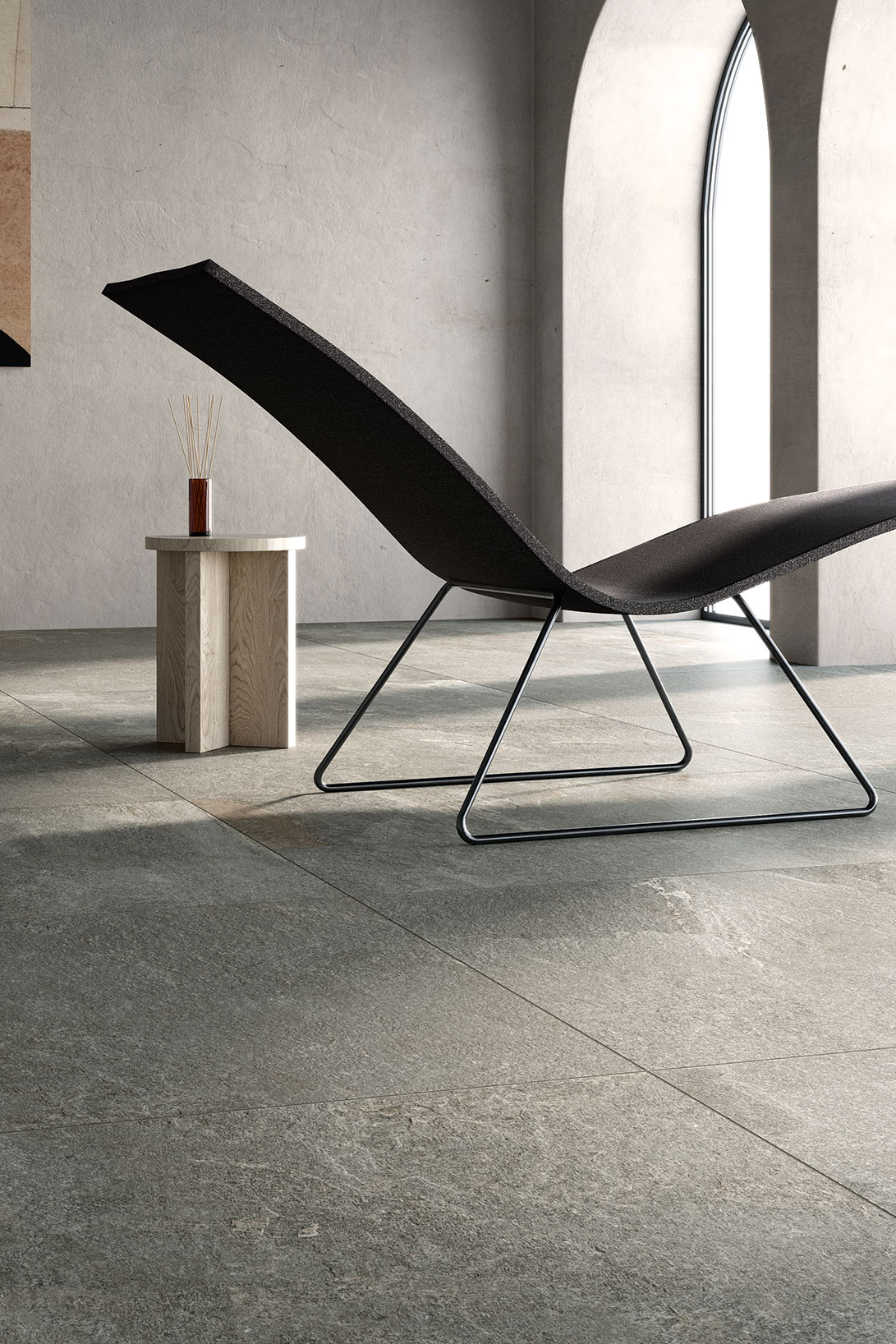 This porcelain stoneware collection takes its inspiration from Kavala Stone, a slate of Greek origin, traditionally used for outdoor flooring of all kinds, as well as roofing elements, thanks to its excellent resistance to wear and tear and external agents. Coem interprets the distinctive colour and material effects of the stone, respecting its natural shades with two finishes, for indoors and outdoors, able to maintain its distinctive technical features unaltered for stone-effect porcelain tiles of impressive power and beauty.