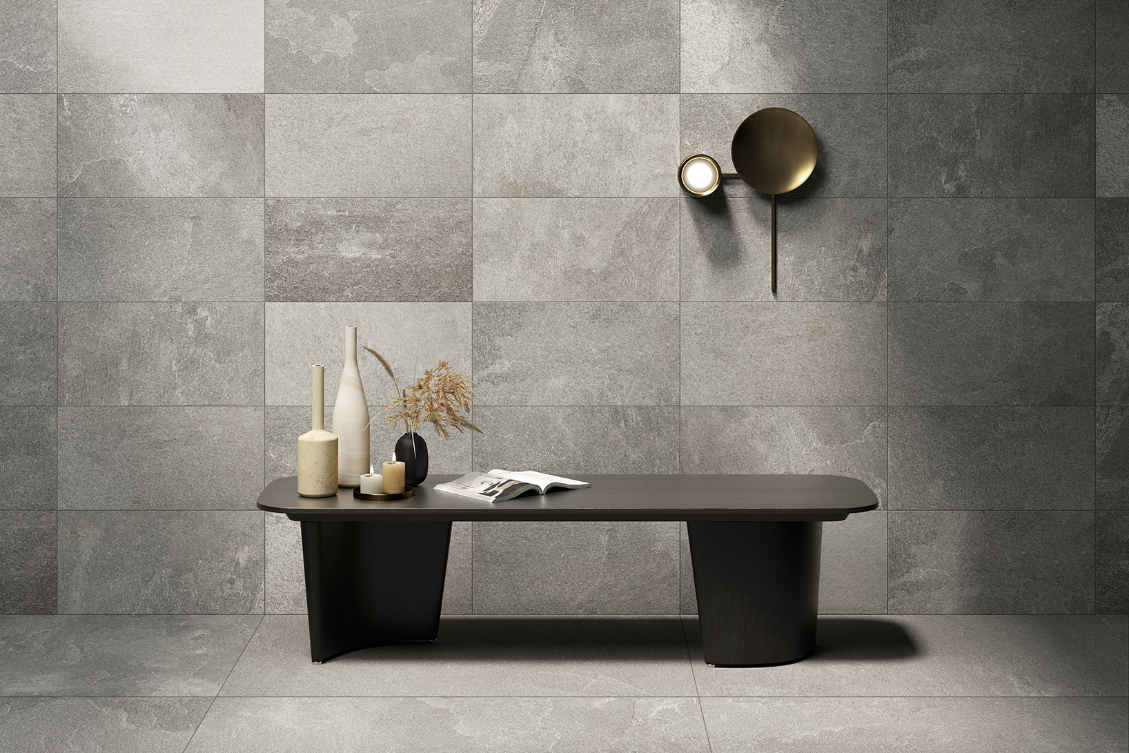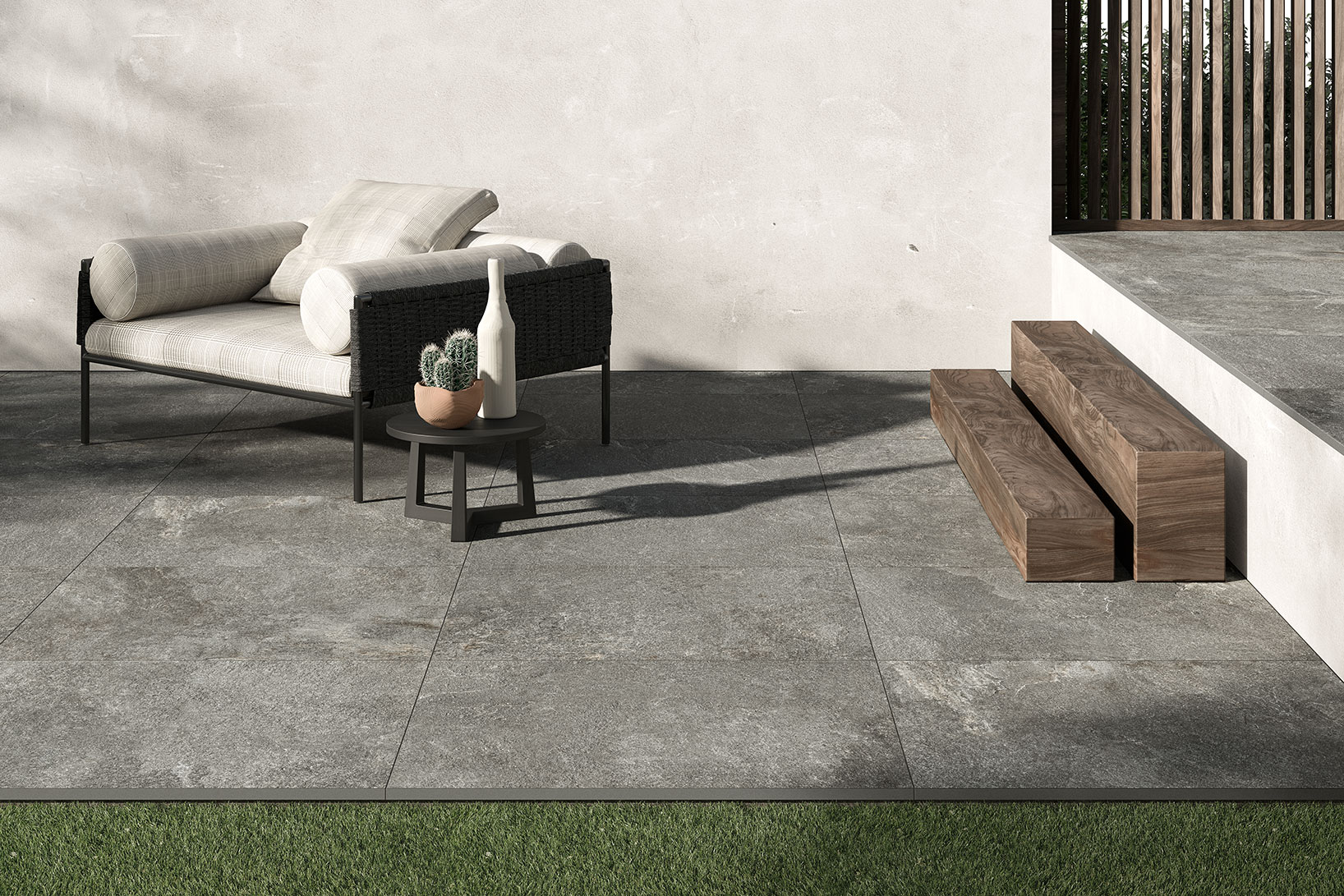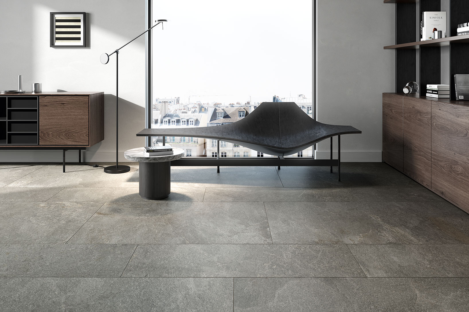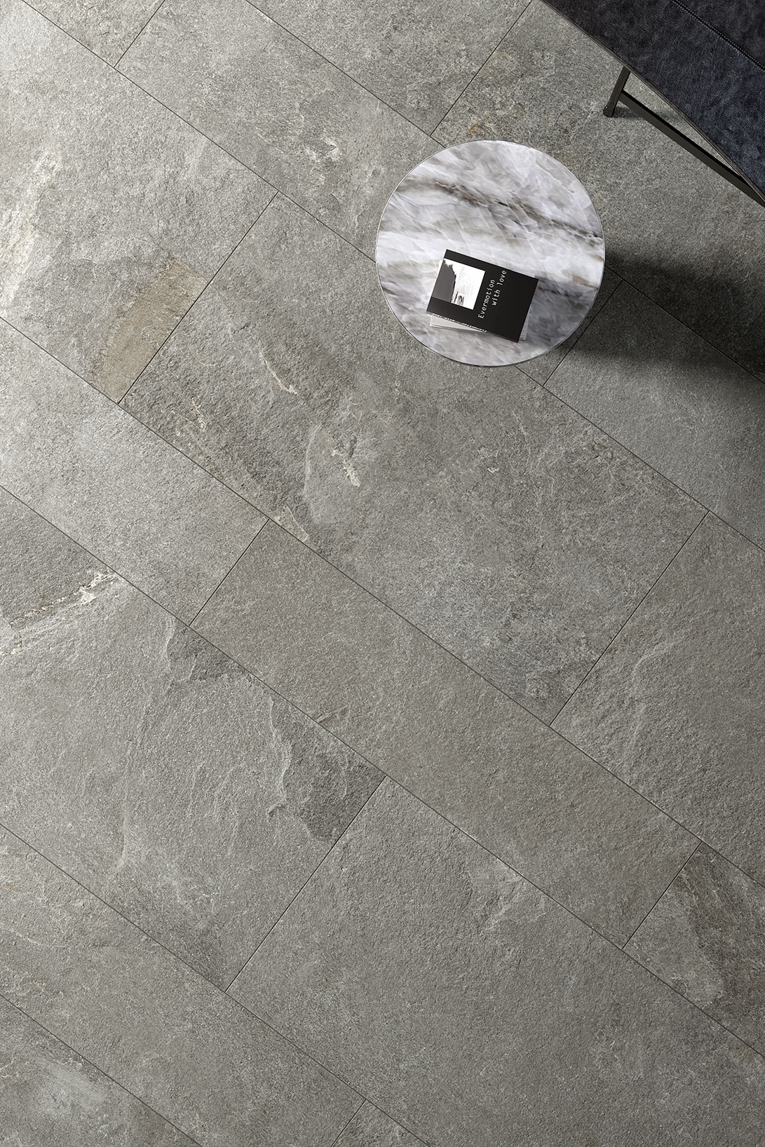 This porcelain stoneware collection takes its inspiration from Kavala Stone, a slate of Greek origin, traditionally used for outdoor flooring of all kinds, as well as roofing elements, thanks to its excellent resistance to wear and tear and external agents. Coem interprets the distinctive colour and material effects of the stone, respecting its natural shades with two finishes, for indoors and outdoors, able to maintain its distinctive technical features unaltered for stone-effect porcelain tiles of impressive power and beauty.