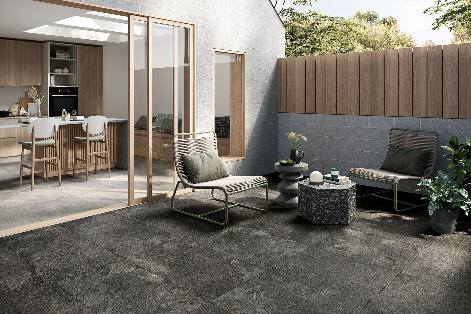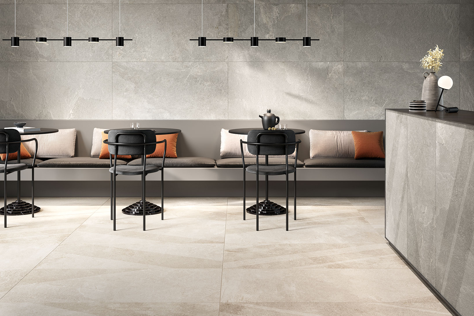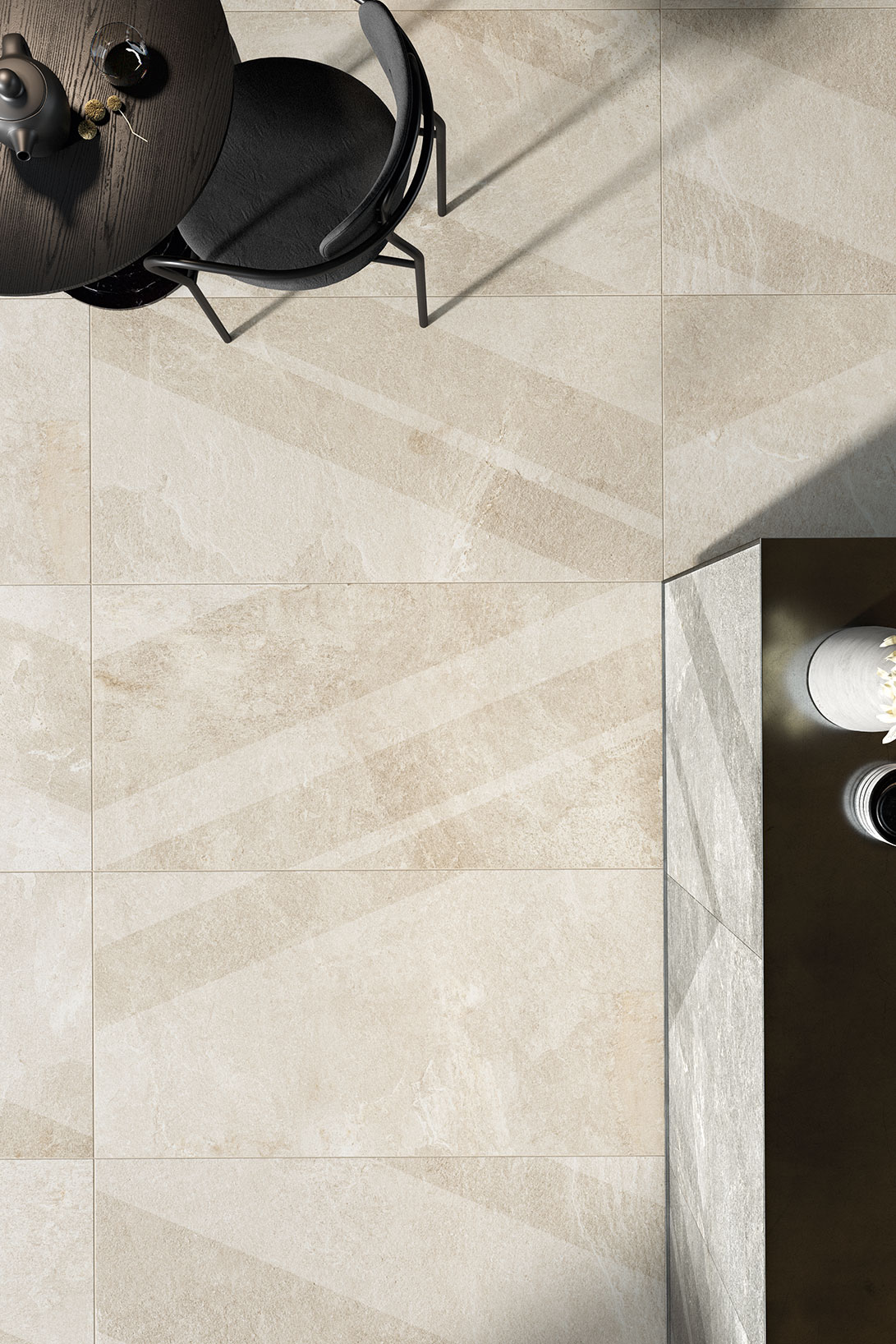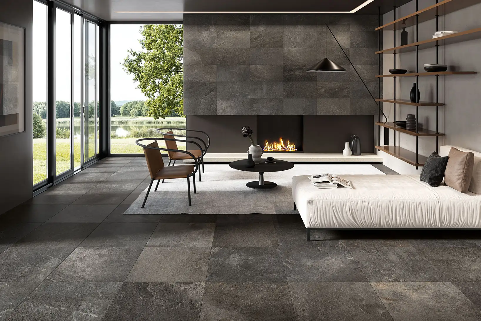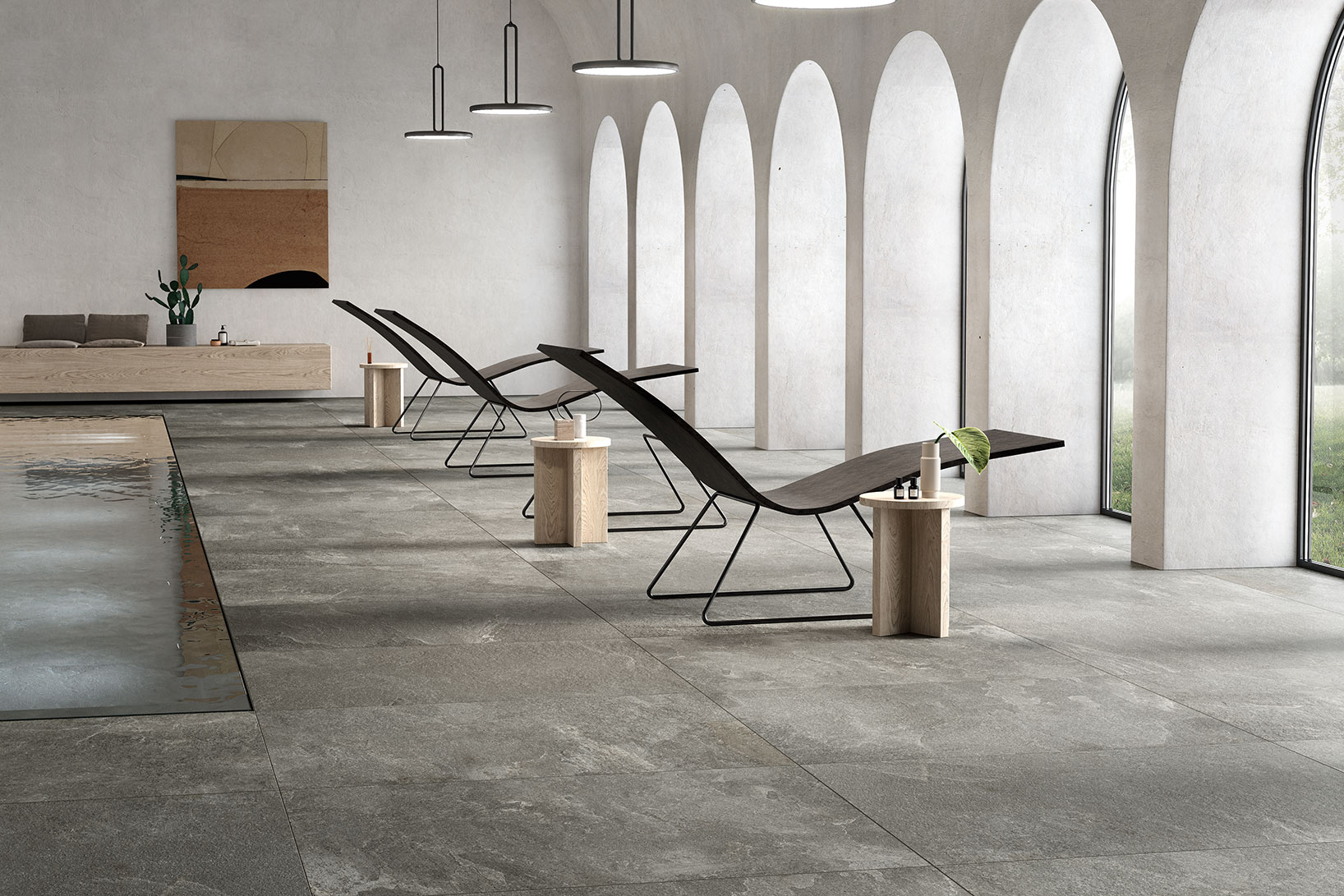 This porcelain stoneware collection takes its inspiration from Kavala Stone, a slate of Greek origin, traditionally used for outdoor flooring of all kinds, as well as roofing elements, thanks to its excellent resistance to wear and tear and external agents. Coem interprets the distinctive colour and material effects of the stone, respecting its natural shades with two finishes, for indoors and outdoors, able to maintain its distinctive technical features unaltered for stone-effect porcelain tiles of impressive power and beauty.