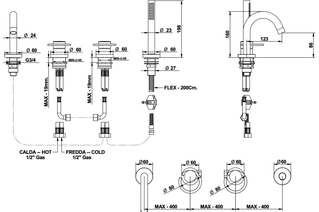 Specification: Bath deck mixer