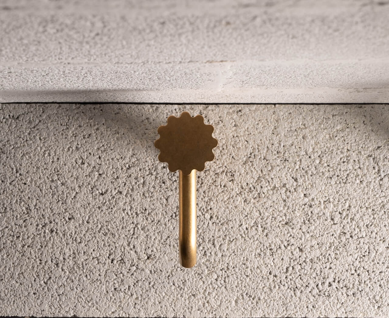 A poetic design gesture, a fleeting sketch becomes a flower, a daisy, MARGOT, announcing in colors a new beginning, a symbol of rebirth, purity, and courage. Caressed by the wind, it dances in the sunlight, moving through space free and light, like a Degas ballerina. We chose this wildflower, a simple yet complex flower, delicate but strong, as a metaphor for the feminine universe, to which we wanted to pay homage. That kaleidoscope of colors and that way of projecting positively toward the future, which only women know how to have. A strong flower, MARGOT, with roots firmly anchored in the soil, like our bond with the land and our traditions. We were inspired by nature and its primordial materials—Stone, Metal, and Ceramic—to dress it in substance and color, allowing for a freer interpretation.