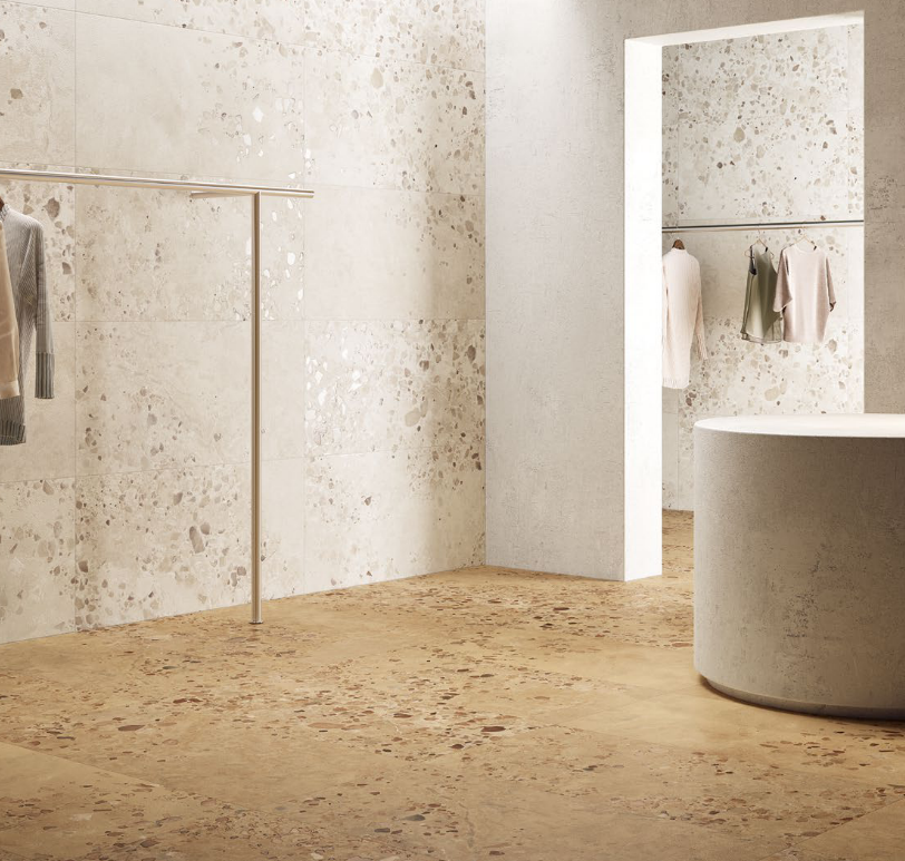 This collection takes its inspiration from a Sicilian sandstone, with pebbles, stones and rocks incorporated into it. The end result is a naturally uneven stone-effect porcelain stoneware featuring a mix of on-trend shades and deliberate colour contrasts that are never over the top. The texture of I COCCI SICILIANI alternates larger and smaller elements, with pebbles of different sizes close together, and long, irregular veins that enhance the natural stone inspiration.
