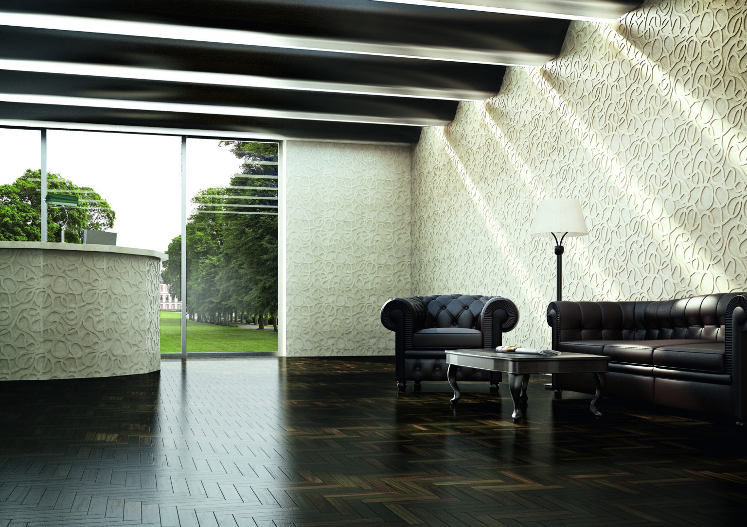 Part of the Kreoo collection of coverings available in bas-relief, graffito or inlay versions, with the enhancement of the craftsmanship of the material. Picto proposes a sinuous graphic motif, applicable to walls and floors. A thin ribbon unfolds in the stone and draws a smooth texture, never repetitive: a kind of coil that offers a delicate decorative suggestion, further enhanced by the possibility of combining two types of marble among the seven proposed for this collection.