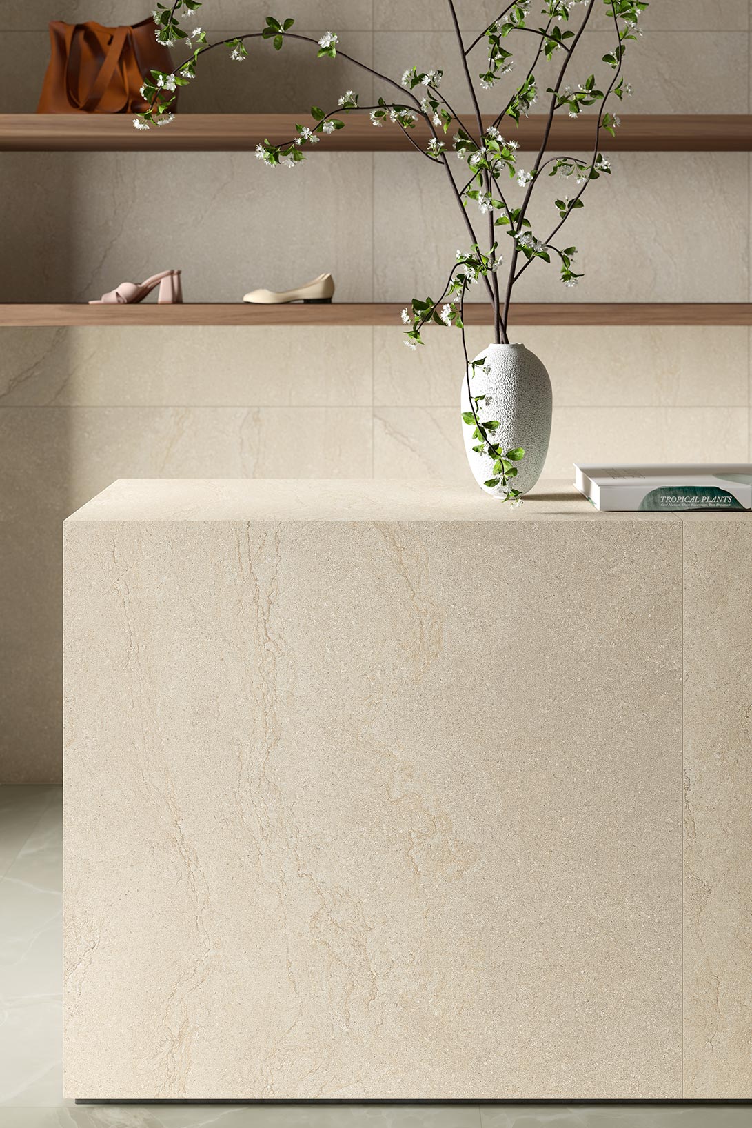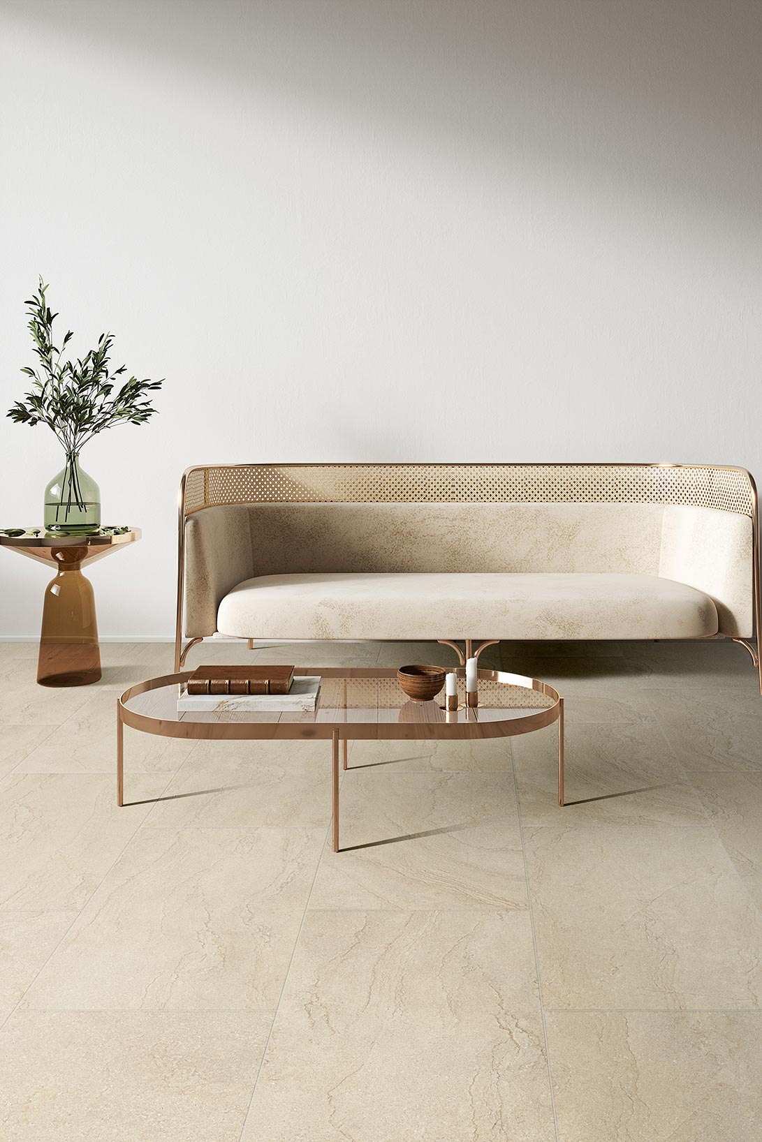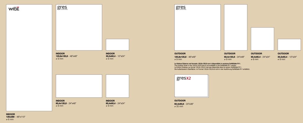 Sinai is a stone-effect porcelain tile collection inspired by the timeless beauty of Golden Sinai stone from Egypt. Its variegated pattern, featuring predominantly golden shades, with veins ranging from beige to brown, brings an enchantingly beautiful look to bathroom, kitchen and living room walls. It is also available in the outdoor porcelain tile version with an “R11 Soft&Safe” finish, with both a 9 mm and a 2 cm GresX2 thickness, for an easy-to-clean, soft-to-the-touch and safe anti-slip surface.
