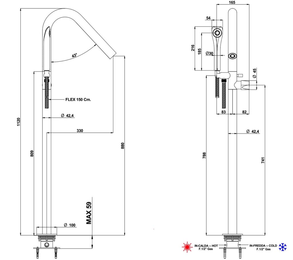 316 brushed stainless steel floor mounted bath mixer with traditional cartridge and handshower set.
