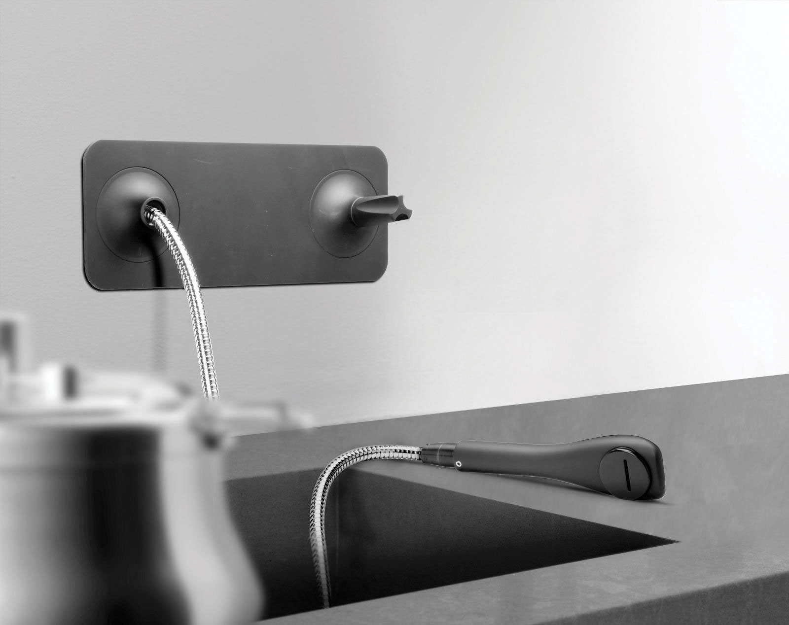 TOOLS wall basin or kitchen mixer with plate and extractable spout/handshower, progressive cartridge. Horizontal or vertical installation.