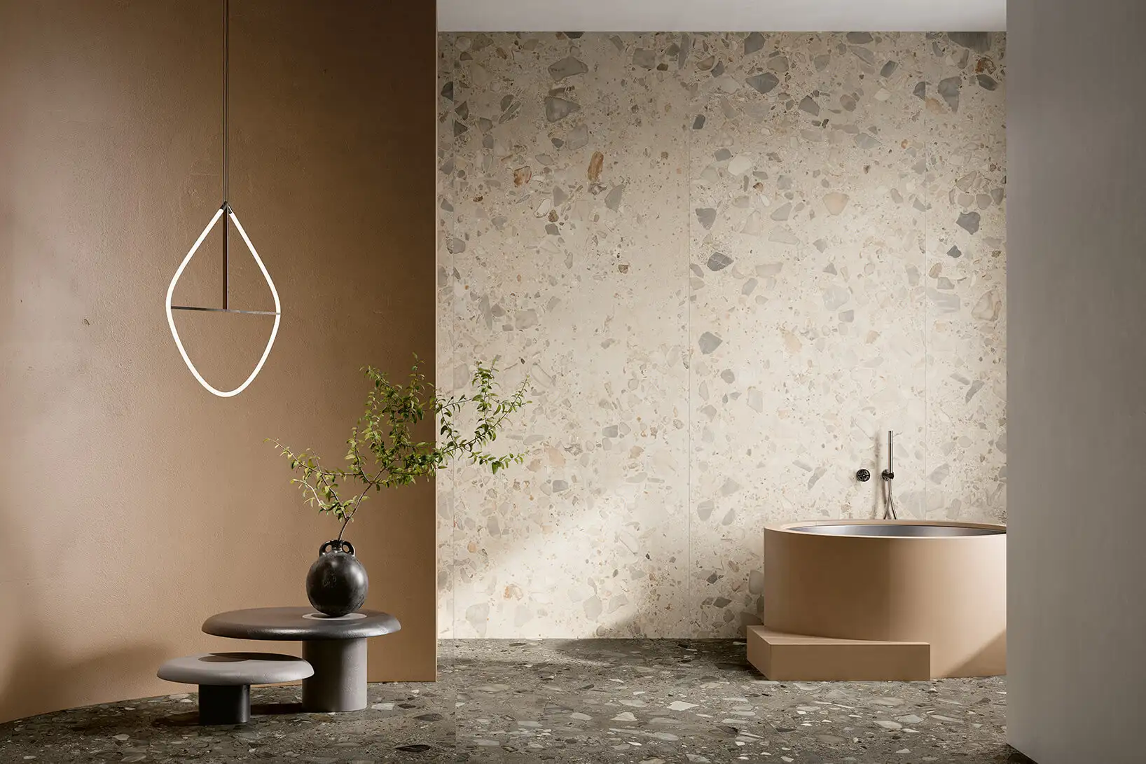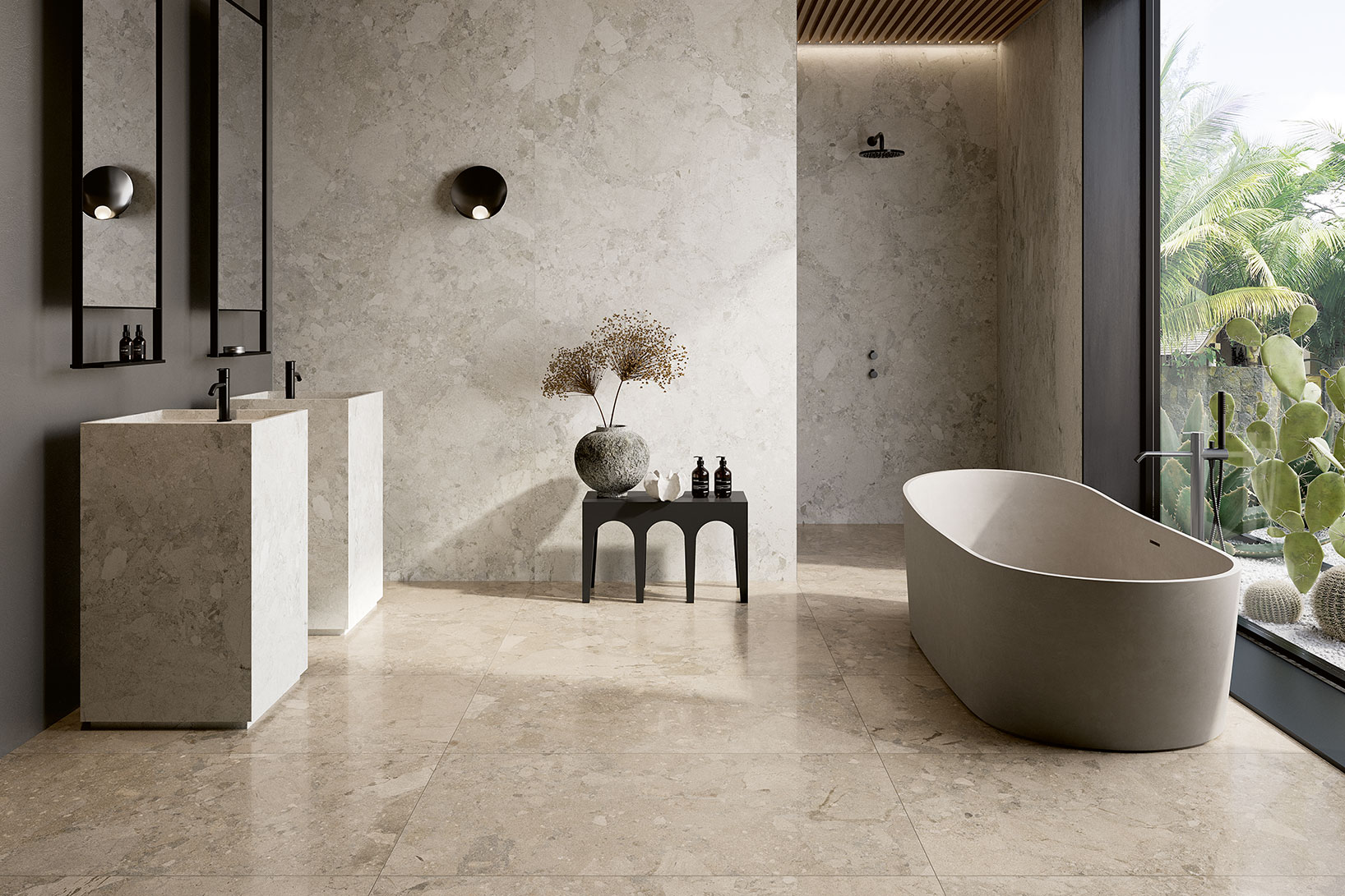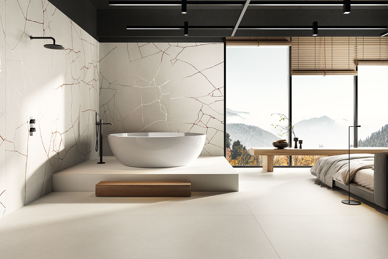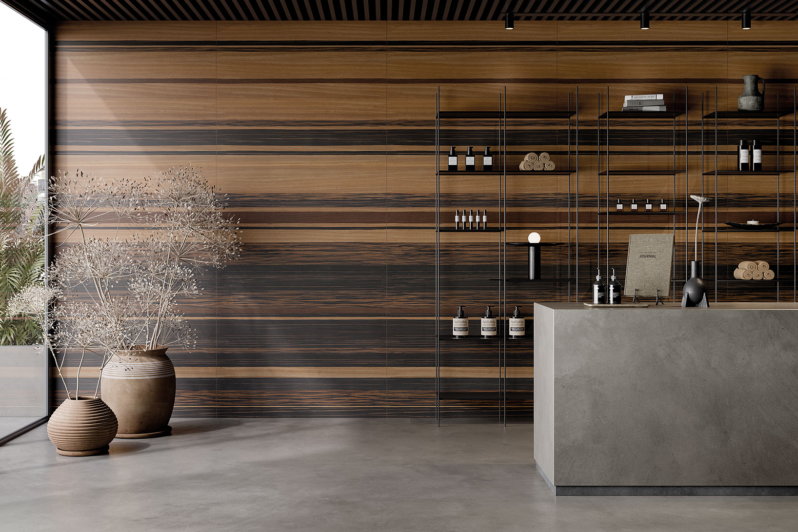 WIDEGres, the name that identifies the large-size tiles by Coem, gains porcelain wall tiles in a new size:120x280cm.The natural elegance of tiles with stone, marble and concrete effects inspired by nature is further enhanced, offering a stimulus for ceramic wall tile design projects able to surprise the observer at every turn.